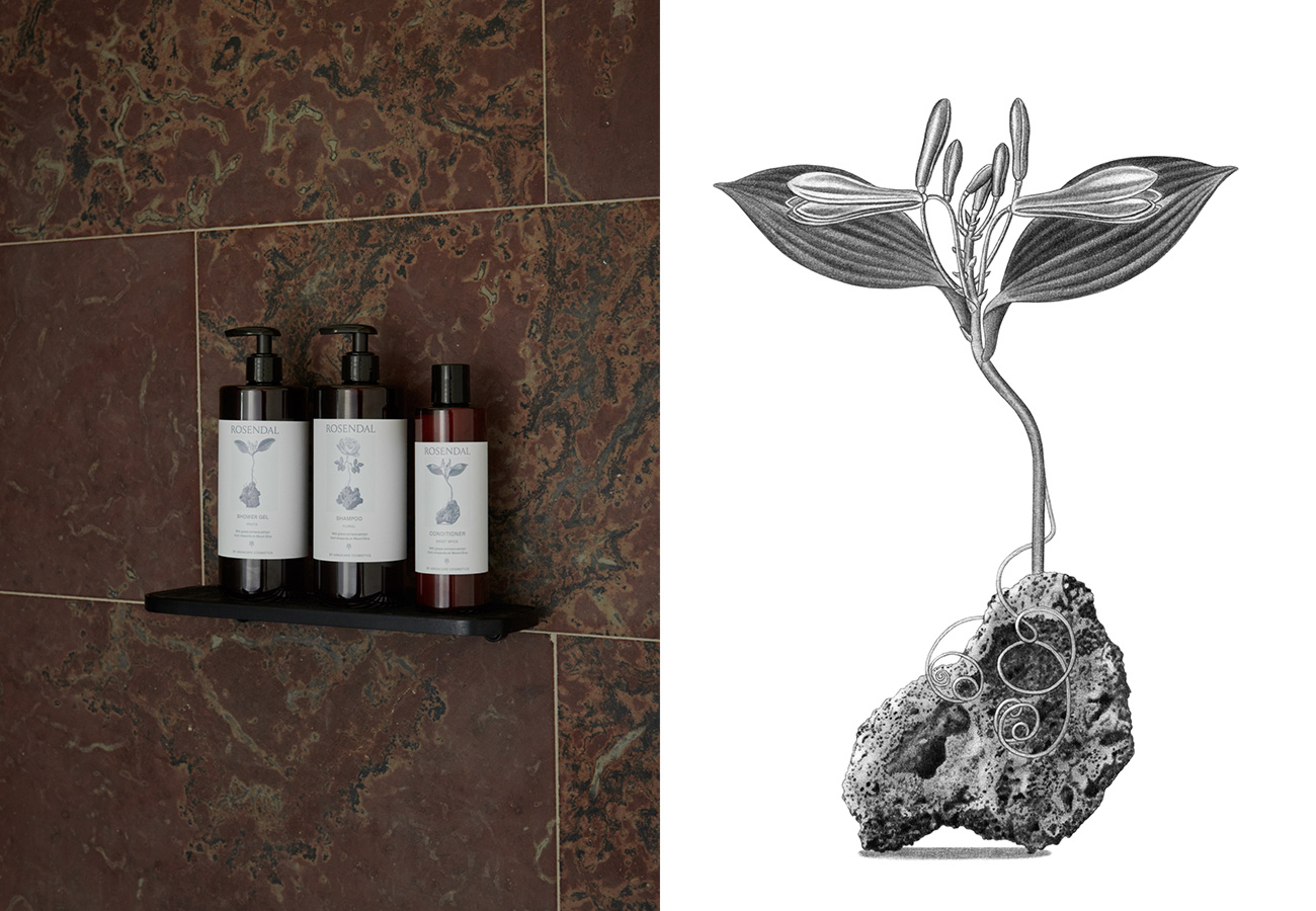 Illustrations for skin care products and sales material for Rosendal Castle. The castle is located in Sweden and offers a setting for private events and business meetings.